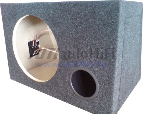 50l láda 30 cm-es, 400-1000W-os szuboknak reflex csővel, dupla csatlakozóval, 2x2,5mm2-es 2x50 cm vezetékkel szerelve
